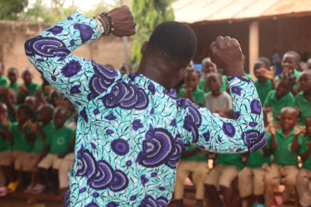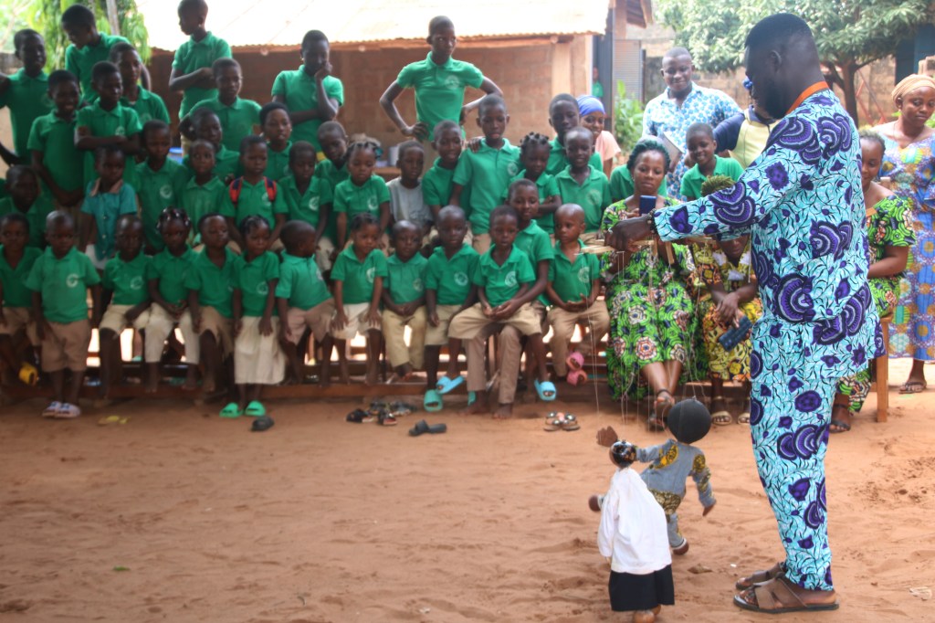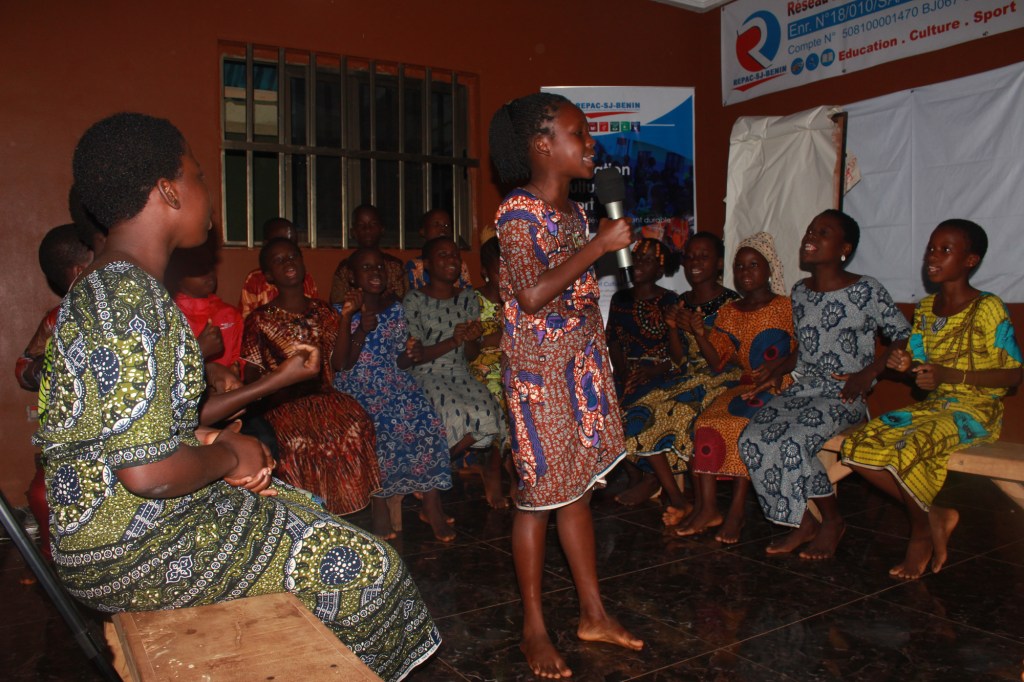 Après deux heures environs de discussions interactives, fructueuses, instructives et enrichissantes, les participant.e.s ont effectué dans l’après-midi une marche éco-contée du centre des jeunes au siège de l’association REPAC-SJ-BÉNIN pour y suivre vers 17h la cérémonie de restitution des ateliers créatifs jeune public, un programme mis en place pour contribuer au développement et à l’épanouissement de la communauté d’Adja-ouèrè par la pratique artistique. Une heure durant, participants de la restitution U-Reports, enfants, jeunes et adultes de Ikpinlè et environs ont suivi avec engouement et satisfaction générale la prestation des artistes en devenir formés au conte, à la poésie, aux arts plastiques, à la danse et à la musique par REPAC-SJ-BÉNIN.
