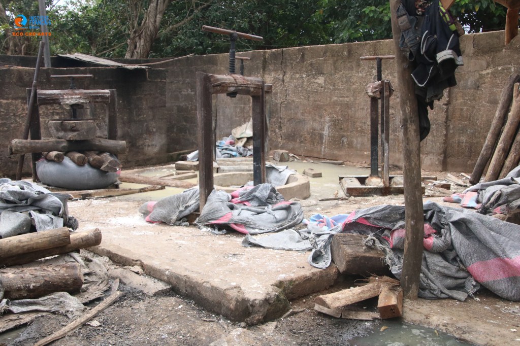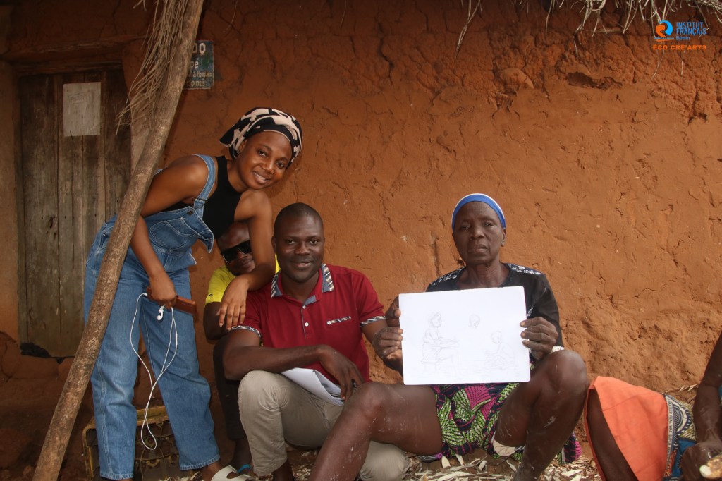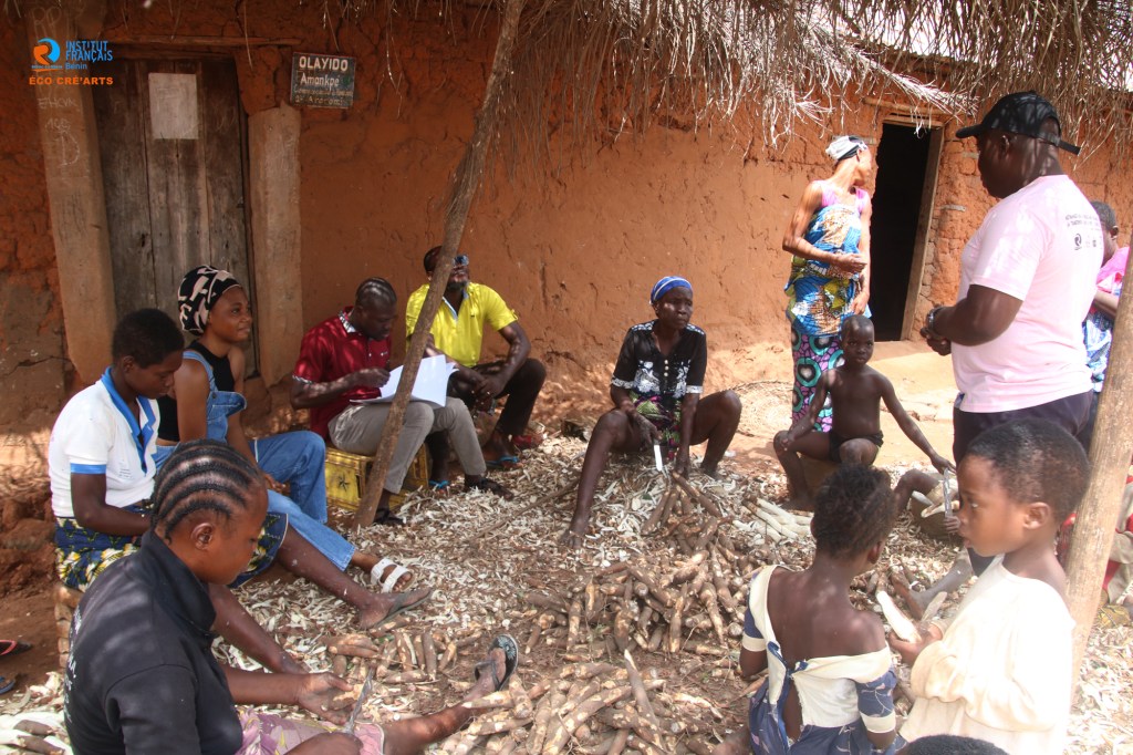 Du 16 au 27 Août 2023, s’est tenue à Ikpinlè la résidence Eco-cré’art. Déroulée au lendemain de la phase d’immersion sur une unité de transformation du manioc à Ikpinlè, Artiste conteur, musicienne et plasticien peignent chacun dans son art les problèmes environnementaux identifiés liés à l’activité et préconisent des démarches et comportements à adopter pour réduire les menaces sur la santé et le bien-être.
