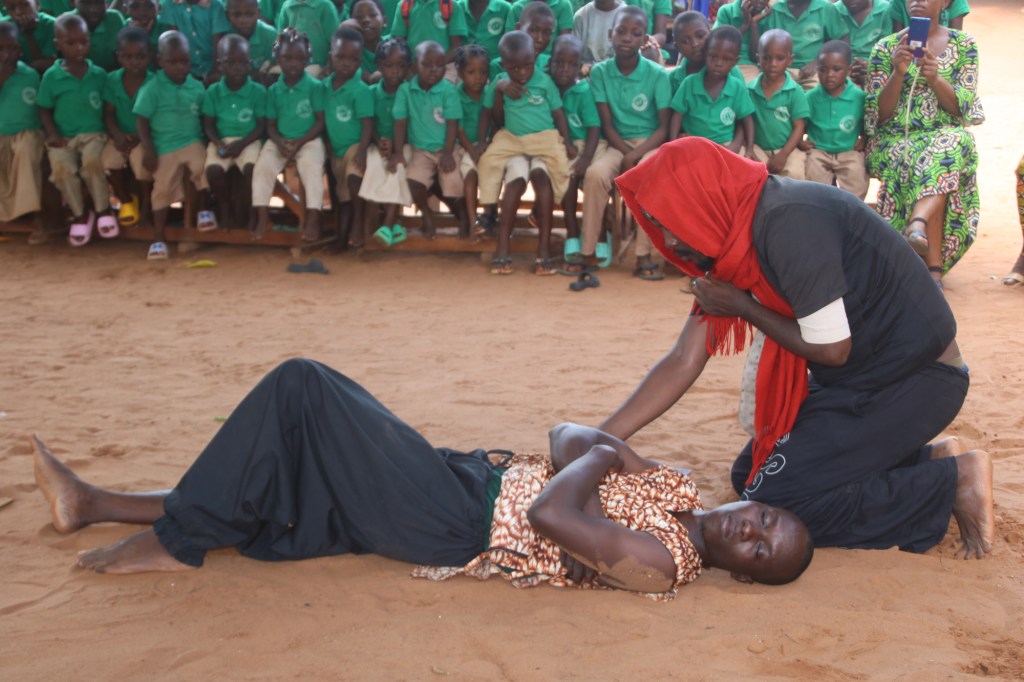 Le spectacle « Apocalypse: la fin n’est pas demain » mis en scène par Sègla Maforikan sous la direction artistique de Zadok-Ange Hounkpatin est l’œuvre de l’association artistes et transformatrices de manioc. Elle vise à sensibiliser la communauté sur une gestion écologiquement rationnelle des déchets issus de la transformation agroalimentaire du manioc et à attirer de façon générale l’attention de la population élargie du Plateau sur les défis de la préservation de l’environnement la perspective de l’atteinte des ODD 3, 10, 11, 12 et 13.