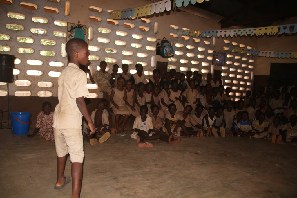 L’intervention a notamment permis aux apprenants des cours moyens (CM1 et CM2) de découvrir quelques outils élémentaires en art oratoires pour réussir une narration et au public scolaire en général de jouir de quelques heures de divertissement sain autour des arts vivants dans un cadre ludique et éducatif en attendant les grands rendez-vous du festival. Elle a également permis aux animateur.trice.s socioculturel.le.s et bénévoles de présélectionner des talents orateurs et oratrices de la voix de demain.