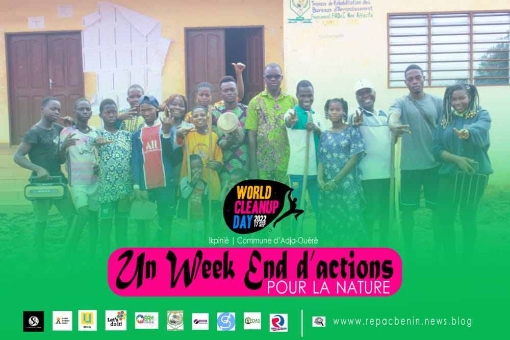 Dans le cadre de la Journée mondiale de nettoyage, le REPAC-SJ-BENIN initie 1 weekend d’Actions pour la Nature à Ikpinlè dans la commune d’Adja-Ouèrè ce Samedi 17 Septembre 2022.
